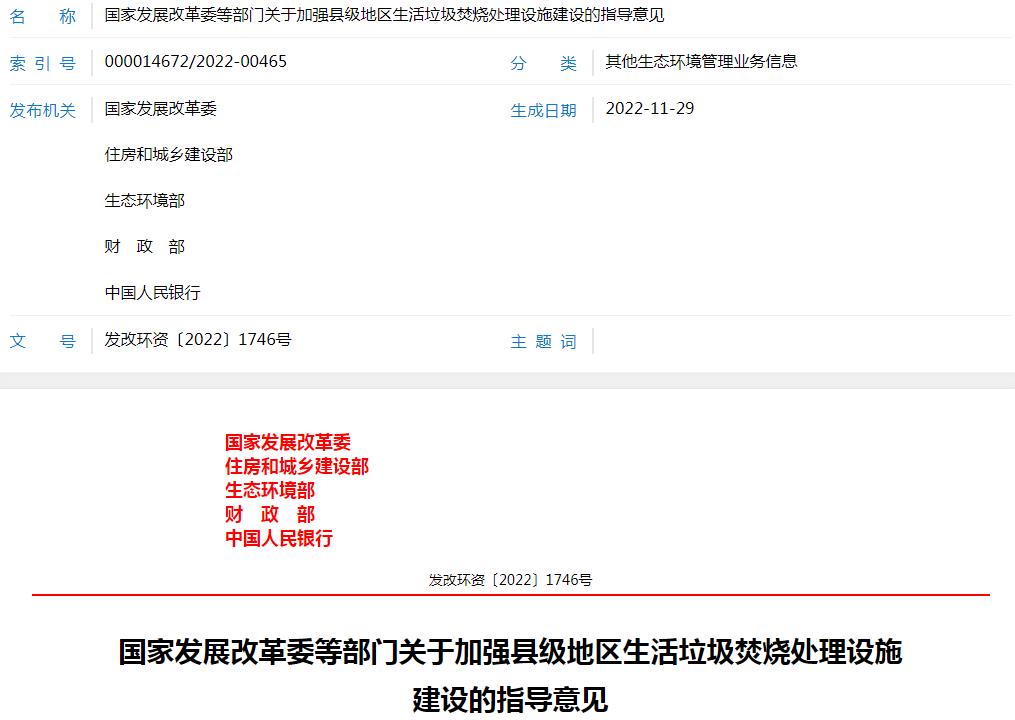 推進(jìn)城鎮(zhèn)生活垃圾焚燒處理設(shè)施建設(shè)是強(qiáng)化環(huán)境基礎(chǔ)設(shè)施建設(shè)的重要環(huán)節(jié)和基礎(chǔ)性工作。為全面貫徹落實黨的二十大精神,貫徹落實黨中央、國務(wù)院有關(guān)決策部署,加強(qiáng)縣級地區(qū)(含縣級市)生活垃圾焚燒處理設(shè)施建設(shè),加快補(bǔ)齊短板弱項,經(jīng)國務(wù)院同意,現(xiàn)提出以下意見。