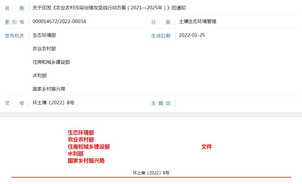 為貫徹落實黨中央、國務院關(guān)于深入打好污染防治攻堅戰(zhàn)的決策部署要求,制定《農(nóng)業(yè)農(nóng)村污染治理攻堅戰(zhàn)行動方案(2021—2025年)》,請認真貫徹執(zhí)行。