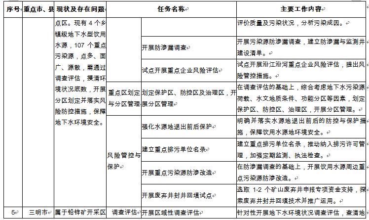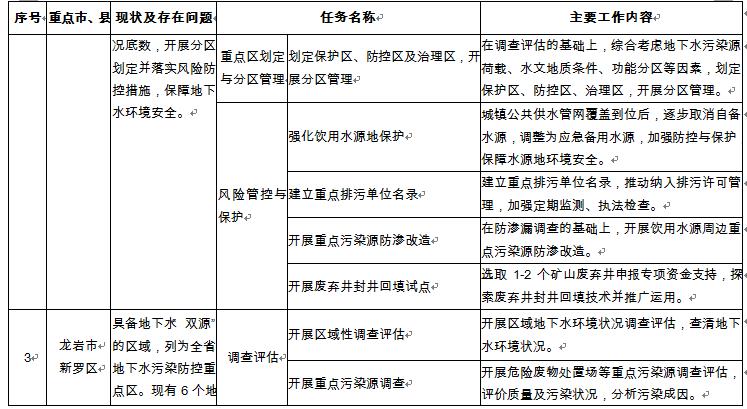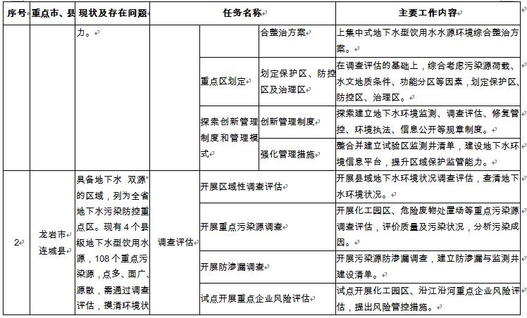 開(kāi)展地下水污染防治分區(qū)管理。實(shí)施地下水環(huán)境分區(qū)管理、分級(jí)防治,明確環(huán)境準(zhǔn)入、隱患排查、風(fēng)險(xiǎn)管控等差別化環(huán)境管理要求。在三明尤溪開(kāi)展地下水污染防治重點(diǎn)區(qū)劃定,在龍巖新羅和連城、三明大田開(kāi)展地下水環(huán)境分區(qū)管理試點(diǎn)。2024年底前完成九市一區(qū)地下水污染防治重點(diǎn)區(qū)劃定工作。