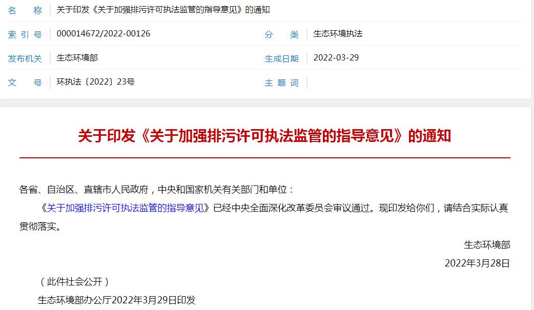 關(guān)于加強排污許可執(zhí)法監(jiān)管的指導(dǎo)意見