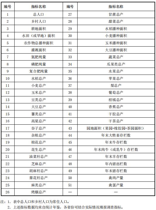 各省份參考統(tǒng)計(jì)年鑒和普查資料等,每年開(kāi)展上一年度農(nóng)業(yè)面源污染相關(guān)分縣指標(biāo)調(diào)查,調(diào)查指標(biāo)清單見(jiàn)附件4,各省份可結(jié)合實(shí)際情況填報(bào)調(diào)查指標(biāo)。此外,有條件的省份可增加調(diào)查內(nèi)容,包括規(guī)模養(yǎng)殖場(chǎng)及規(guī)模以下養(yǎng)殖戶數(shù)、畜禽養(yǎng)殖類型及養(yǎng)殖量。各省份以縣為單元,開(kāi)展年度農(nóng)業(yè)面源污染相關(guān)參數(shù)調(diào)查,調(diào)查指標(biāo)包括農(nóng)村(或城鄉(xiāng))生活垃圾無(wú)害化處理率、農(nóng)村生活污水處理率、畜禽糞污綜合利用率(或資源化利用率),每年開(kāi)展上一年度的參數(shù)調(diào)查。若分縣參數(shù)調(diào)查指標(biāo)獲取難度大,建議各省份以地市級(jí)行政區(qū)為單元獲取相應(yīng)指標(biāo)。