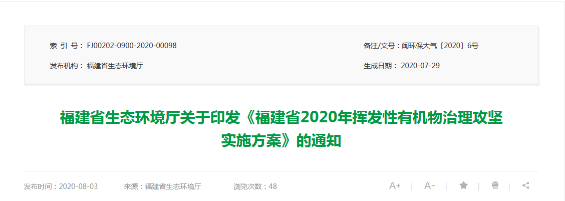 附件:《福建省2020年揮發(fā)性有機(jī)物治理攻堅(jiān)實(shí)施方案》