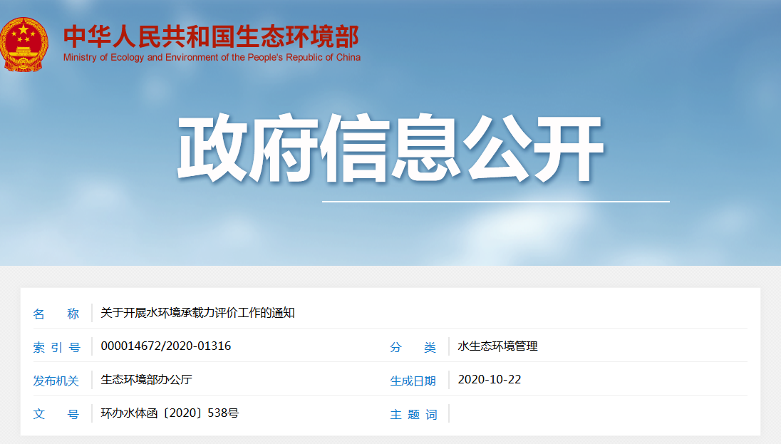 關(guān)于開(kāi)展水環(huán)境承載力評(píng)價(jià)工作的通知