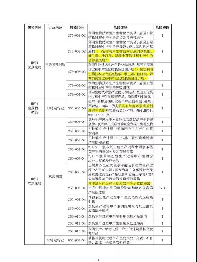 一是刪除2016 年版《名錄》正文第四條“列入《危險化學品目錄》的化學品廢棄后屬于危險廢物”;