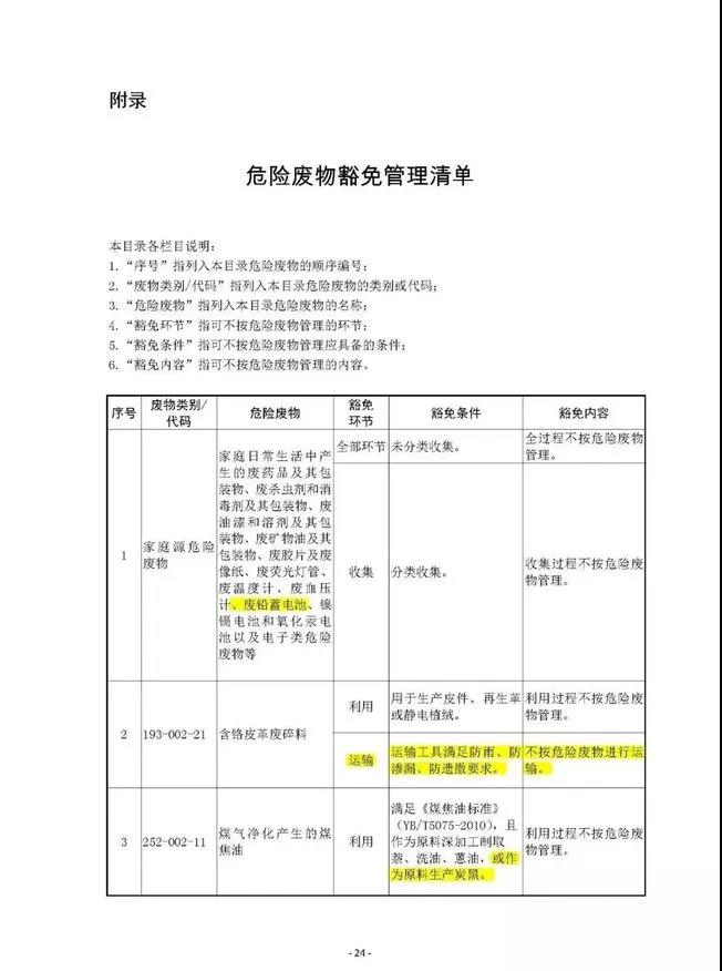 第四條列入本名錄附錄《危險廢物豁免管理清單》中的危險廢物,在所列的豁免環(huán)節(jié),且滿足相應的豁免條件時,可以按照豁免內容的規(guī)定實行豁免管理。