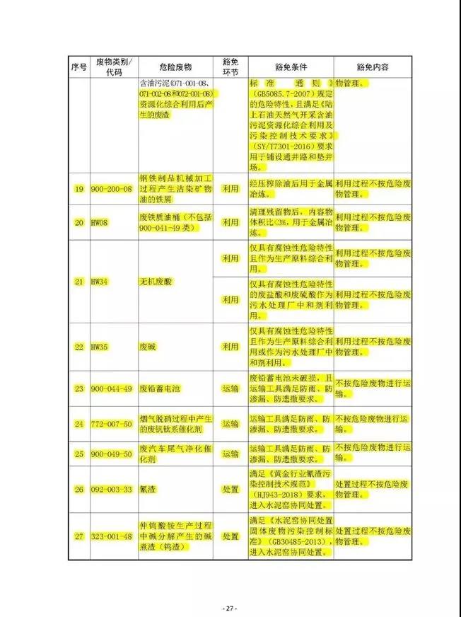 3.修訂了附錄《危險廢物豁免管理清單》?!睹洠ㄐ抻喐澹罚ǘ握髑笠庖姼澹┑母戒浶略?4 種危險廢物,共計30 種危險廢物。