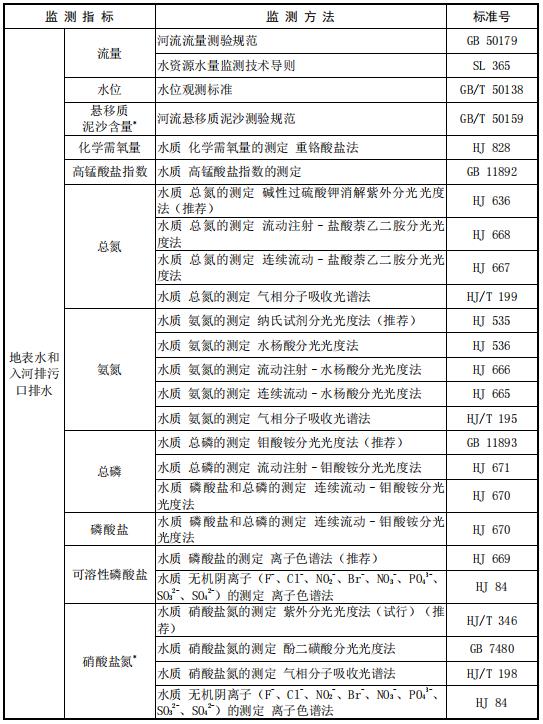 流量、水位、水面寬度、懸移質(zhì)泥沙含量*;化學(xué)需氧量或高錳酸鹽指數(shù)、總氮、氨氮、總磷、磷酸鹽、可溶性磷酸鹽、硝酸鹽氮*、pH;降水量。注:*為選測(cè)指標(biāo)。