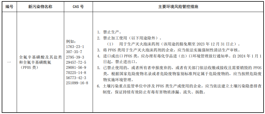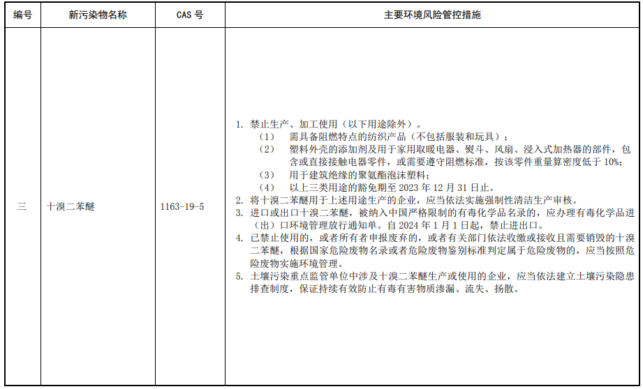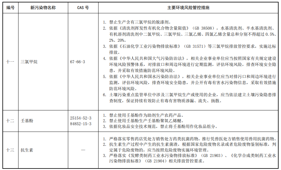 第三條 對(duì)列入本清單的新污染物,應(yīng)當(dāng)按照國(guó)家有關(guān)規(guī)定采取禁止、限制、限排等環(huán)境風(fēng)險(xiǎn)管控措施。
